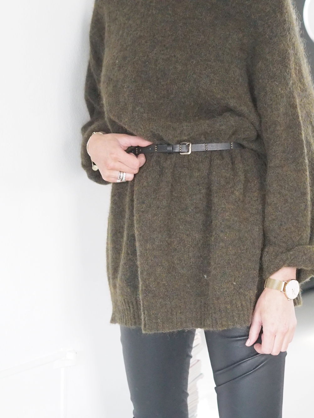 Jeg liker den fine siluetten ett belte tilfører ett plagg og bruker det på det meste av kjoler og gensere. En kanske rett og oversized genser blir fort litt mere feminin med ett belte i midjen !