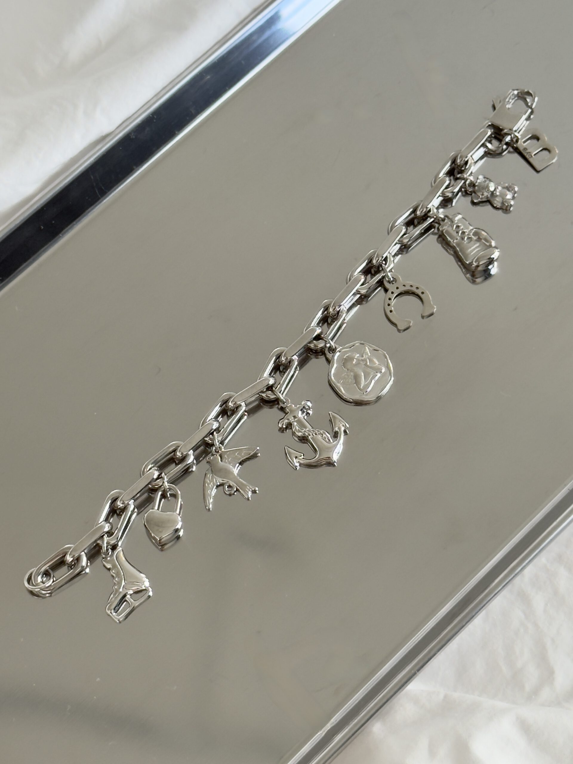 Armbåndet er laget i 925 sterling sølv, belagt med 18k gull, og har en vannfast finish som gjør at det tåler hverdagens bruk uten å miste glansen. Hvert lille charm er en hyllest til generasjonene før oss, og et symbol på alt vi bærer videre.